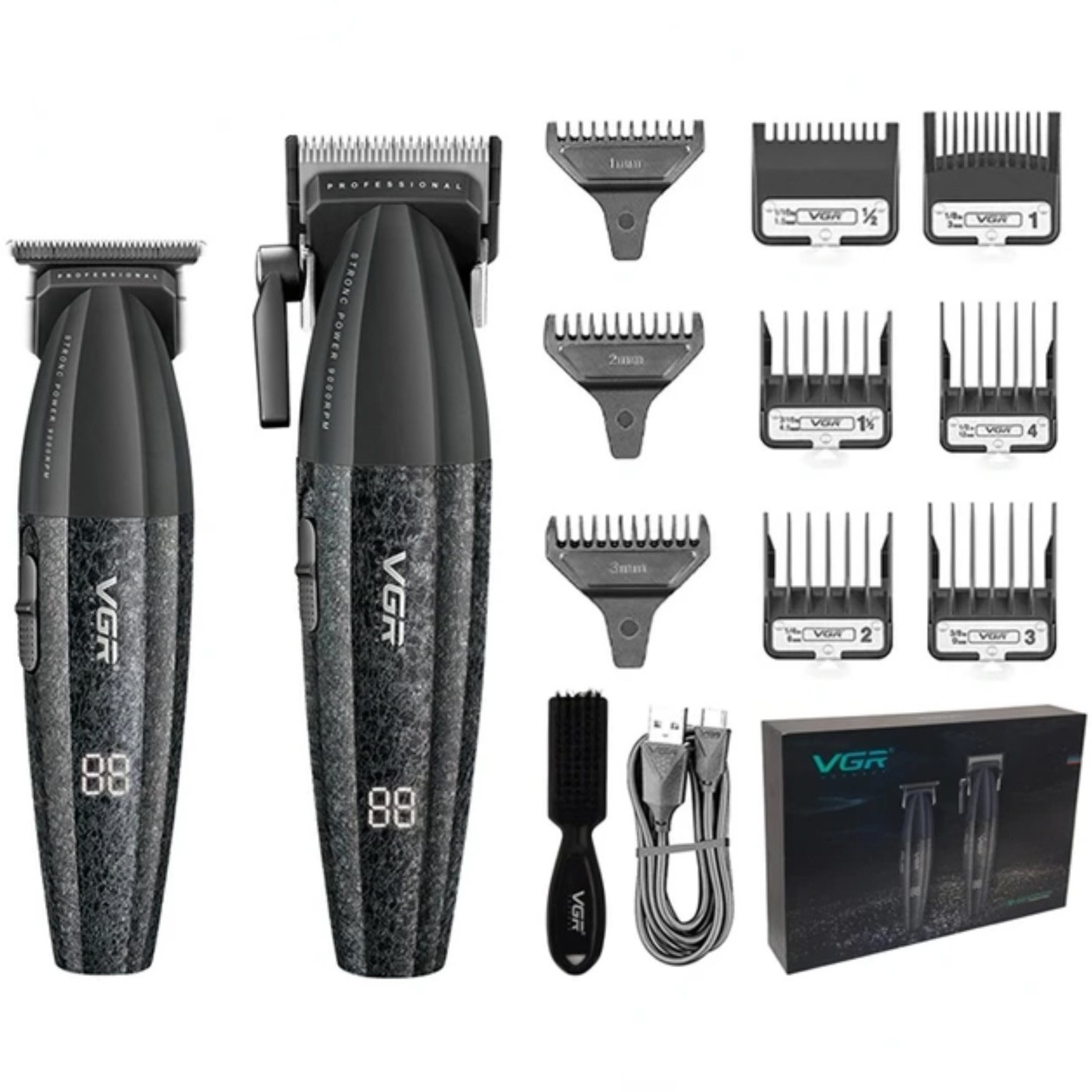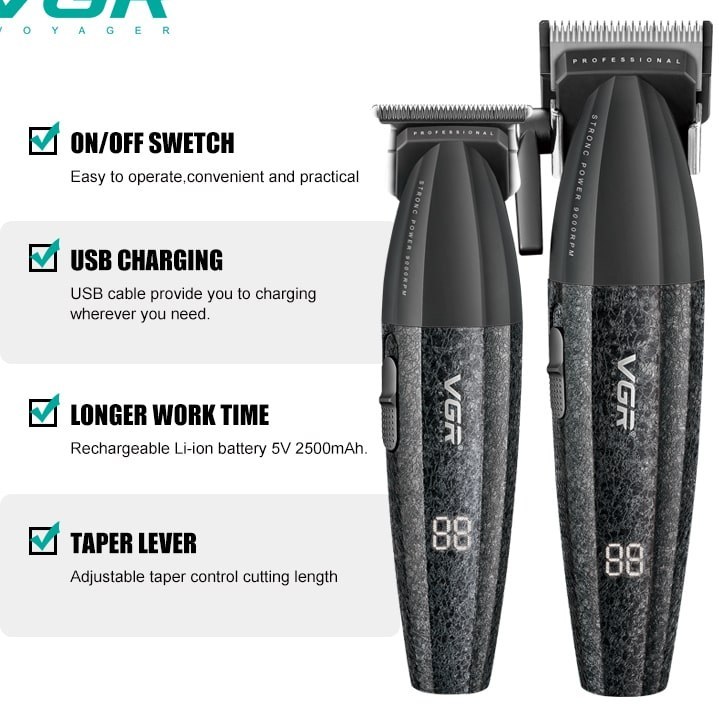 ست اصلاح حرفه ای وی جی آر دارای حجیم زن و خط زن حرفهوای با تیغه های سرامیکی و برش مستقیم مخصوص سالن مدل 640